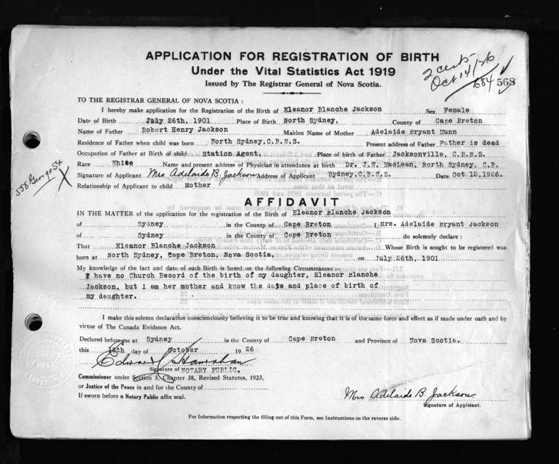 Nova Scotia Archives — https://archives.novascotia.ca/vital-statistics/birth/?ID=157605