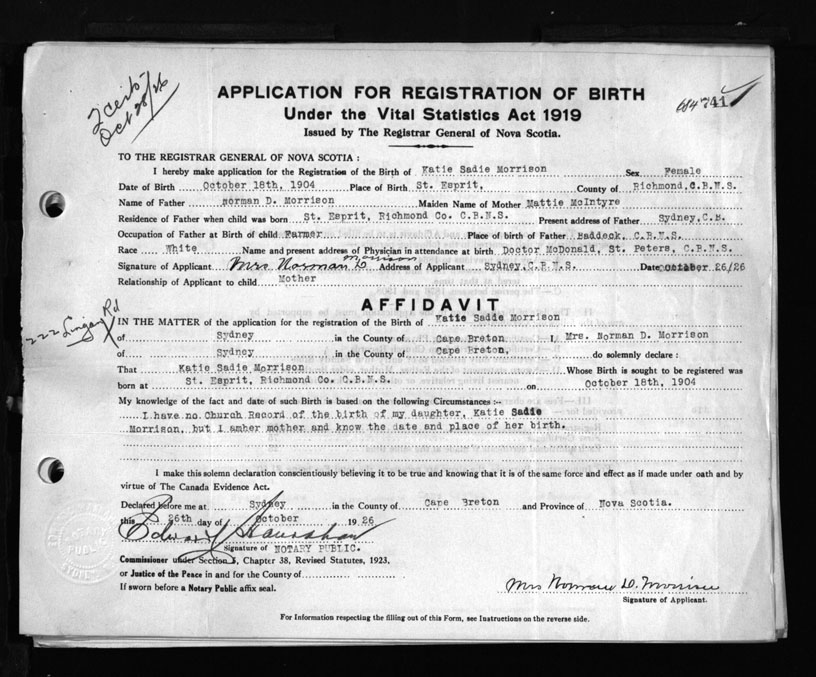 Nova Scotia Archives — https://archives.novascotia.ca/vital-statistics/birth/?ID=157725