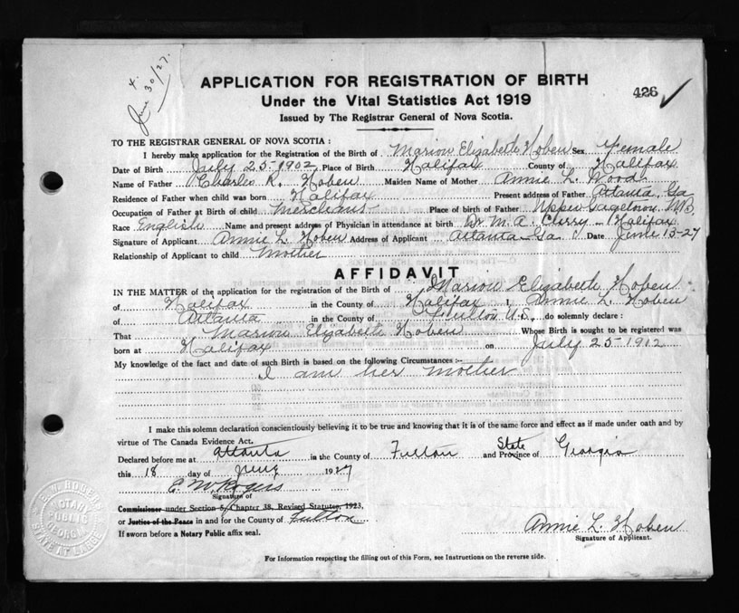 Nova Scotia Archives — https://archives.novascotia.ca/vital-statistics/birth/?ID=159294
