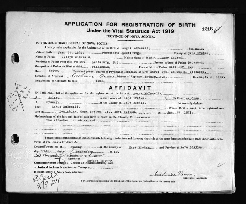 Nova Scotia Archives — https://archives.novascotia.ca/vital-statistics/birth/?ID=160576