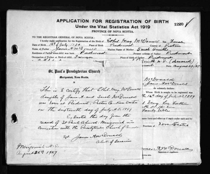 Nova Scotia Archives — https://archives.novascotia.ca/vital-statistics/birth/?ID=160578