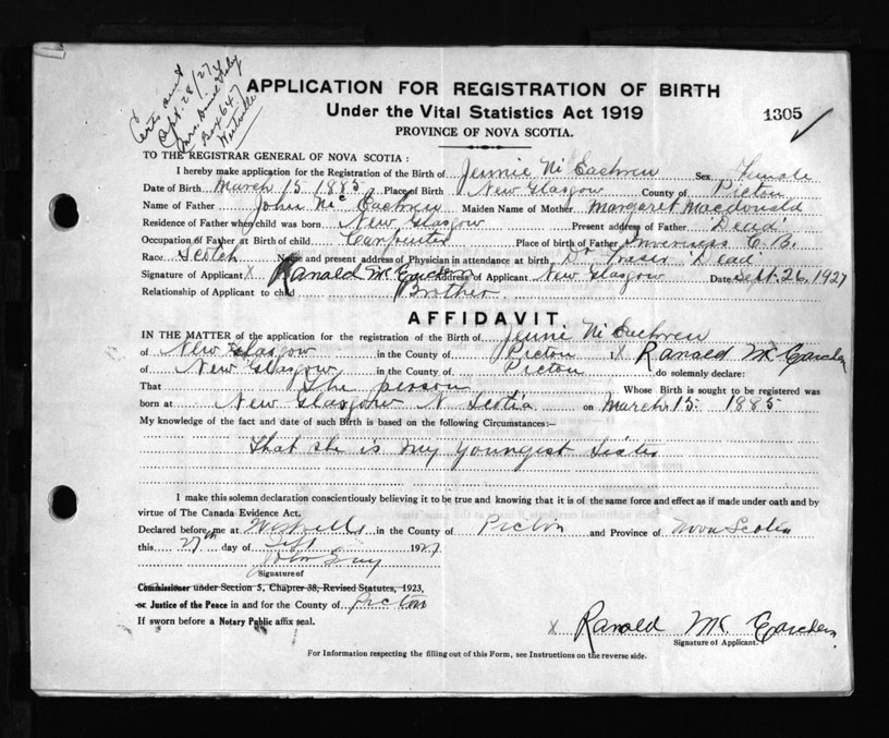 Nova Scotia Archives — https://archives.novascotia.ca/vital-statistics/birth/?ID=160627