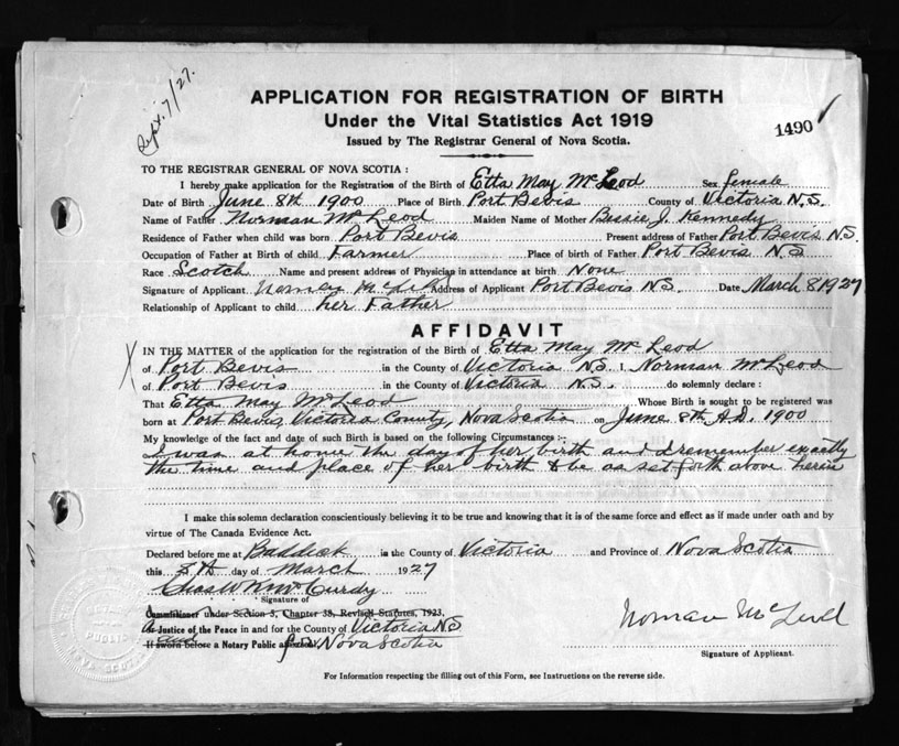 Nova Scotia Archives — https://archives.novascotia.ca/vital-statistics/birth/?ID=160743