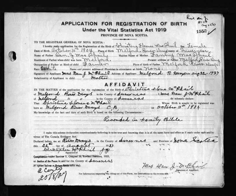 Nova Scotia Archives — https://archives.novascotia.ca/vital-statistics/birth/?ID=160781
