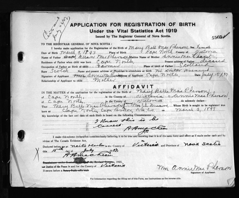 Nova Scotia Archives — https://archives.novascotia.ca/vital-statistics/birth/?ID=160789