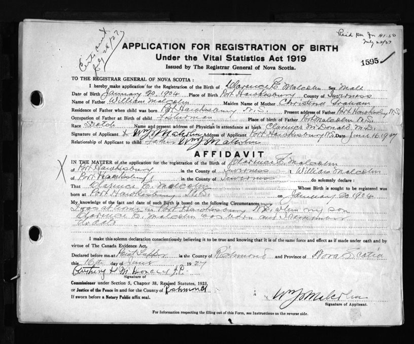 Nova Scotia Archives — https://archives.novascotia.ca/vital-statistics/birth/?ID=160809