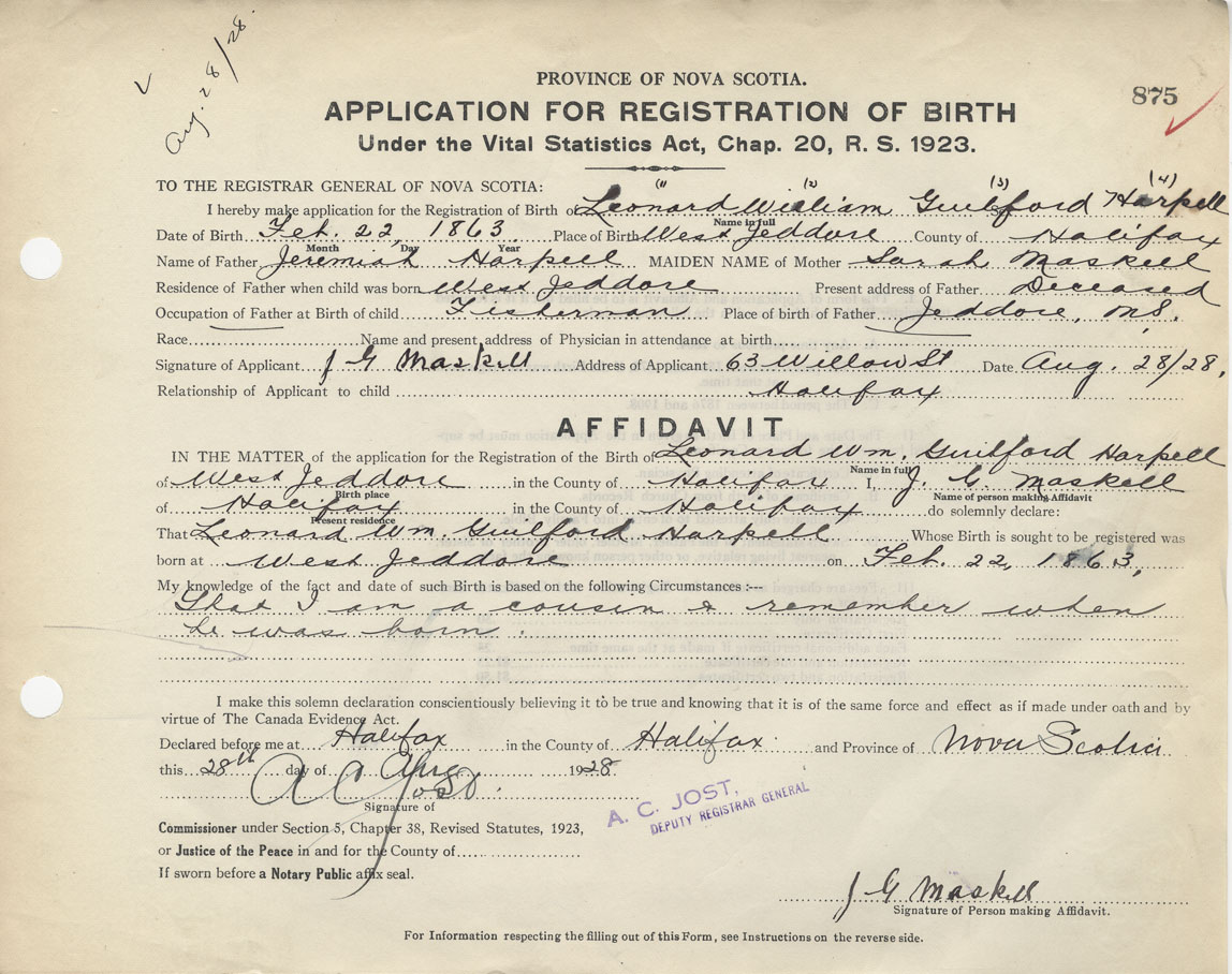 Nova Scotia Archives — https://archives.novascotia.ca/vital-statistics/birth/?ID=163103
