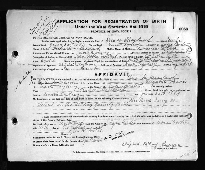 Nova Scotia Archives — https://archives.novascotia.ca/vital-statistics/birth/?ID=166427