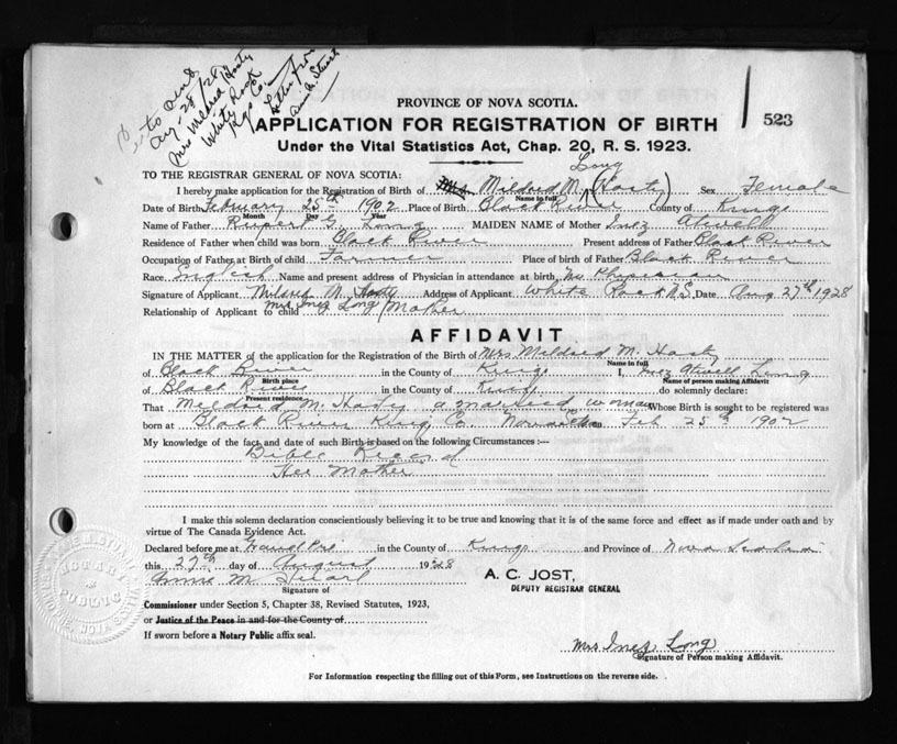 Nova Scotia Archives — https://archives.novascotia.ca/vital-statistics/birth/?ID=167034
