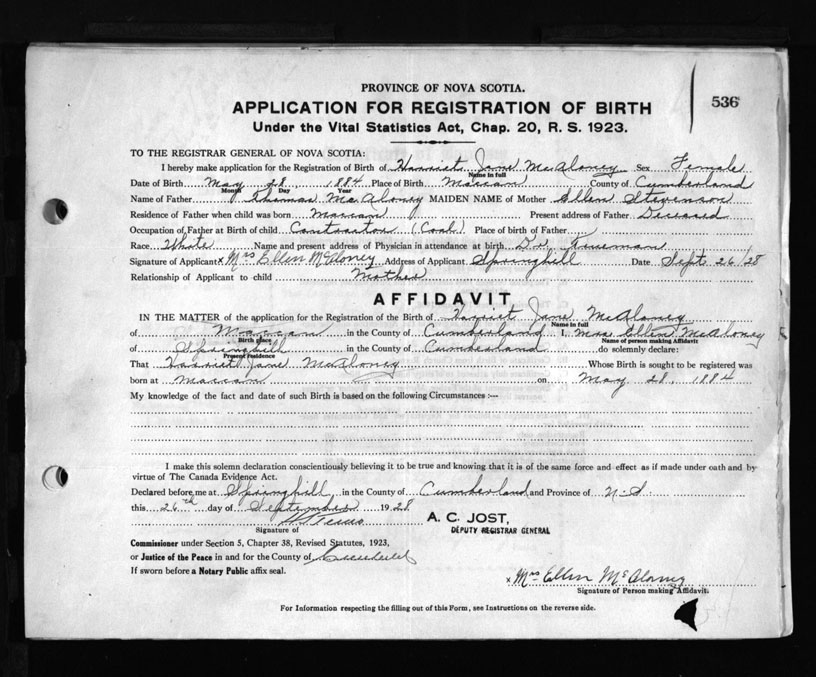 Nova Scotia Archives — https://archives.novascotia.ca/vital-statistics/birth/?ID=167043