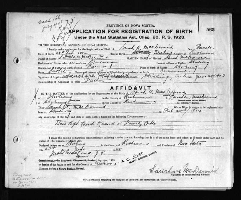Nova Scotia Archives — https://archives.novascotia.ca/vital-statistics/birth/?ID=167065