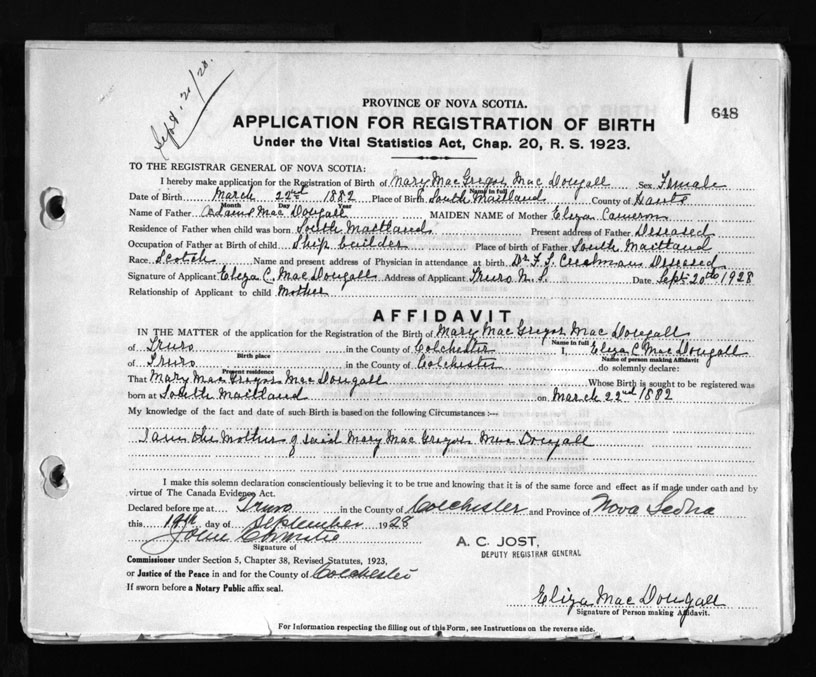 Nova Scotia Archives — https://archives.novascotia.ca/vital-statistics/birth/?ID=167116