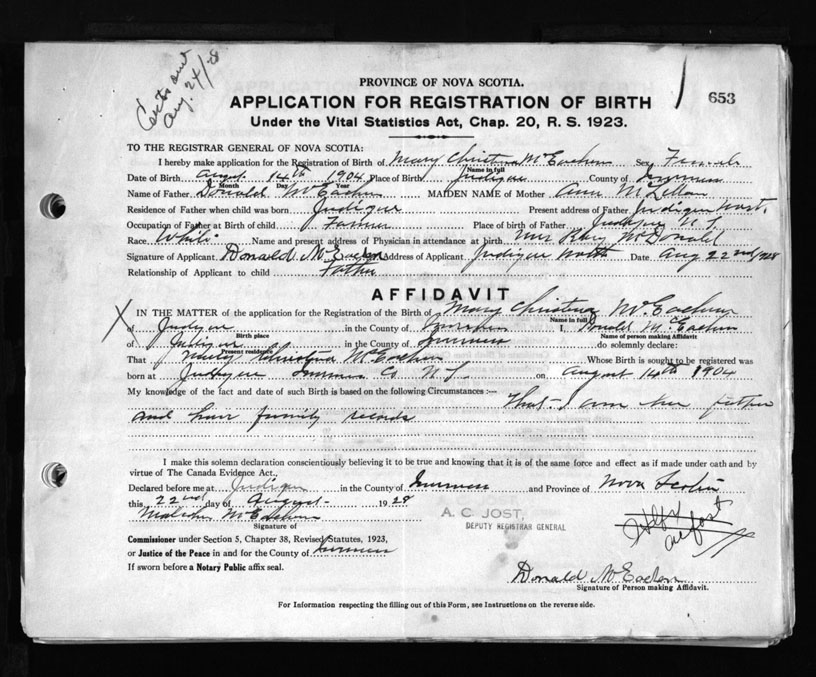 Nova Scotia Archives — https://archives.novascotia.ca/vital-statistics/birth/?ID=167119