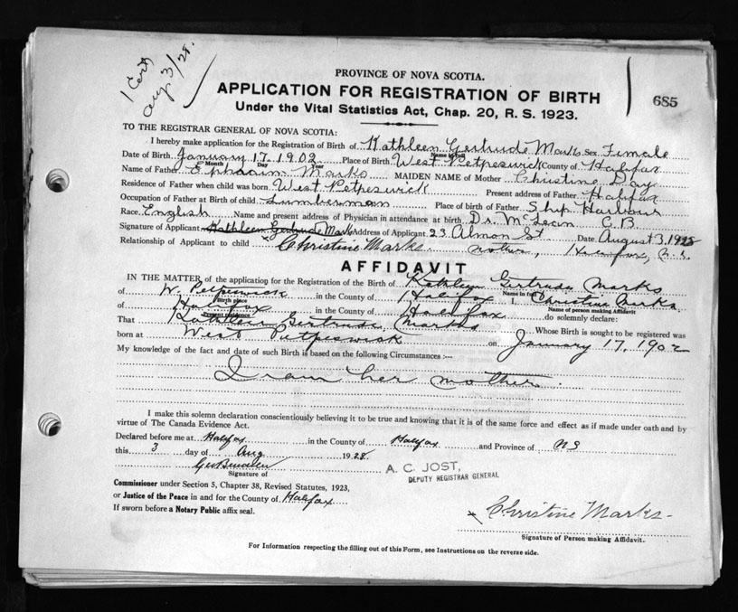 Nova Scotia Archives — https://archives.novascotia.ca/vital-statistics/birth/?ID=167143