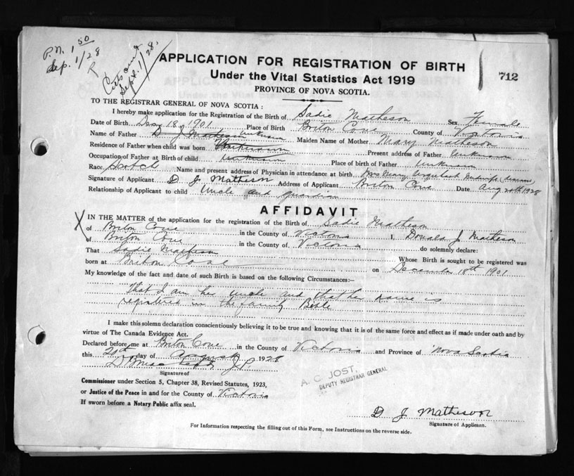 Nova Scotia Archives — https://archives.novascotia.ca/vital-statistics/birth/?ID=167161