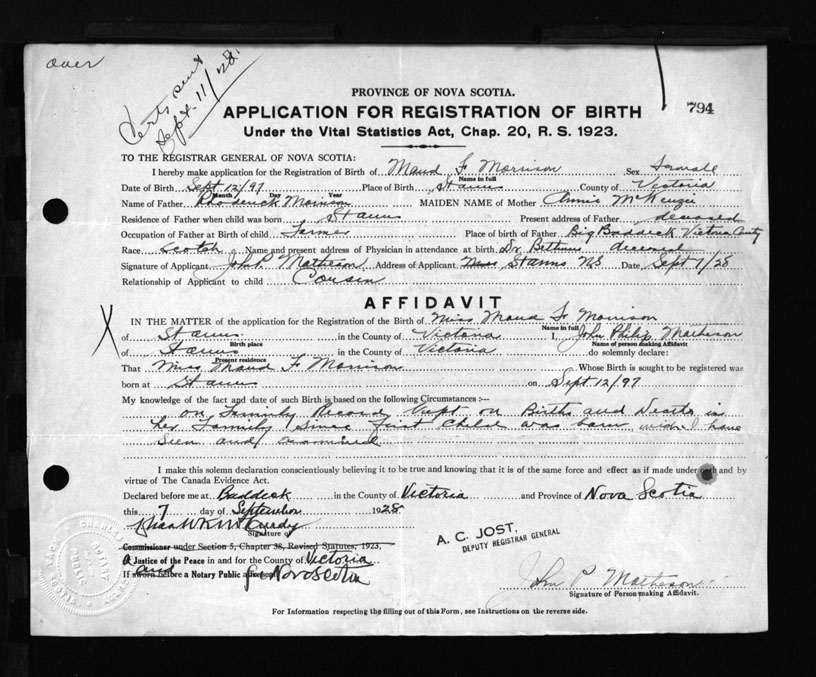 Nova Scotia Archives — https://archives.novascotia.ca/vital-statistics/birth/?ID=167214