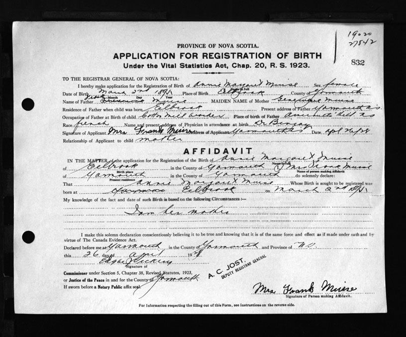 Nova Scotia Archives — https://archives.novascotia.ca/vital-statistics/birth/?ID=167240