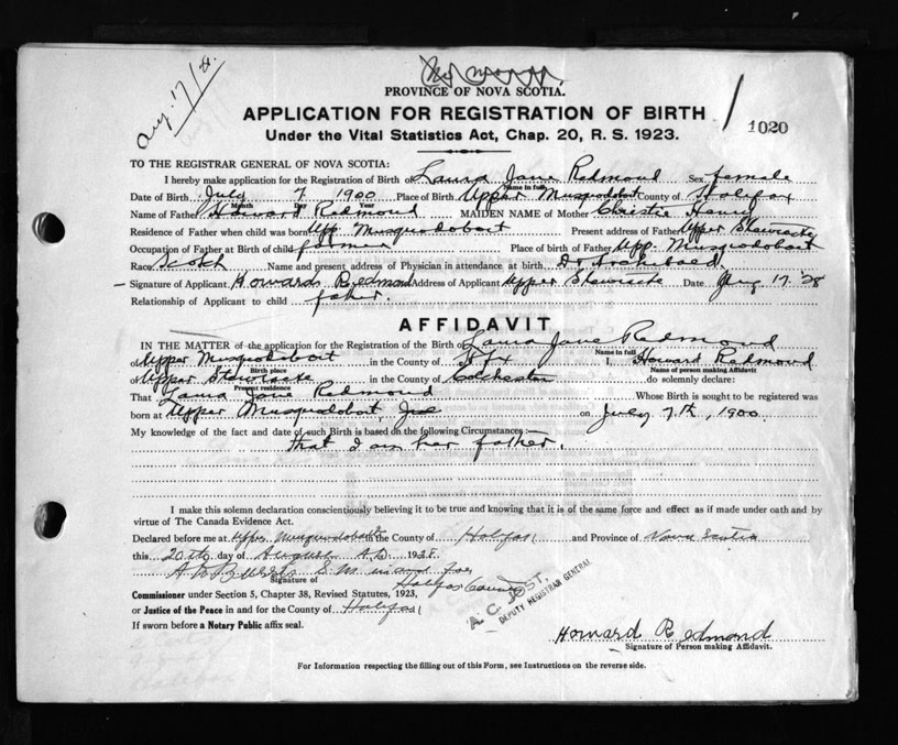 Nova Scotia Archives — https://archives.novascotia.ca/vital-statistics/birth/?ID=167364