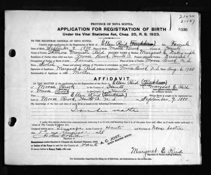 Nova Scotia Archives — https://archives.novascotia.ca/vital-statistics/birth/?ID=167366