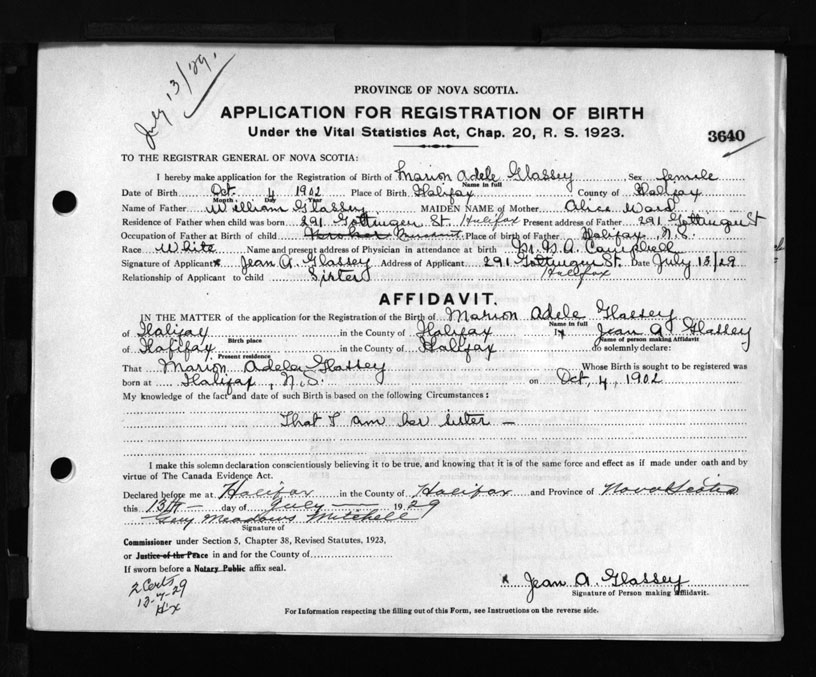 Nova Scotia Archives — https://archives.novascotia.ca/vital-statistics/birth/?ID=169146