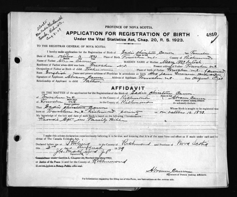Nova Scotia Archives — https://archives.novascotia.ca/vital-statistics/birth/?ID=169990