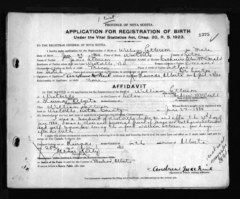 Nova Scotia Archives — https://archives.novascotia.ca/vital-statistics/birth/?ID=172241
