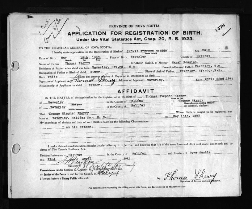 Nova Scotia Archives — https://archives.novascotia.ca/vital-statistics/birth/?ID=172309