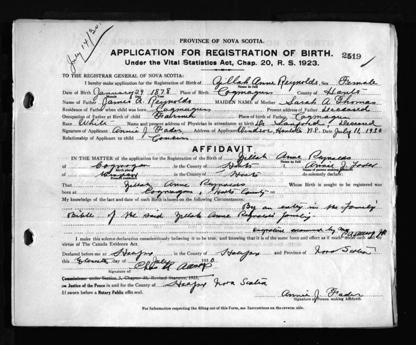 Nova Scotia Archives — https://archives.novascotia.ca/vital-statistics/birth/?ID=173056