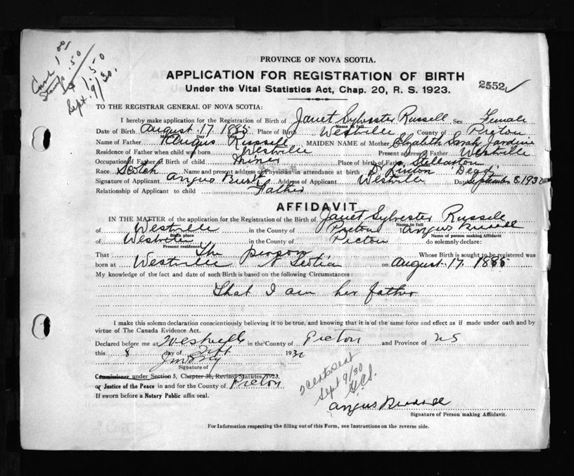 Nova Scotia Archives — https://archives.novascotia.ca/vital-statistics/birth/?ID=173078
