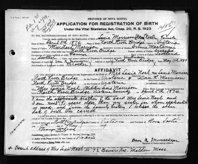Nova Scotia Archives — https://archives.novascotia.ca/vital-statistics/birth/?ID=181411