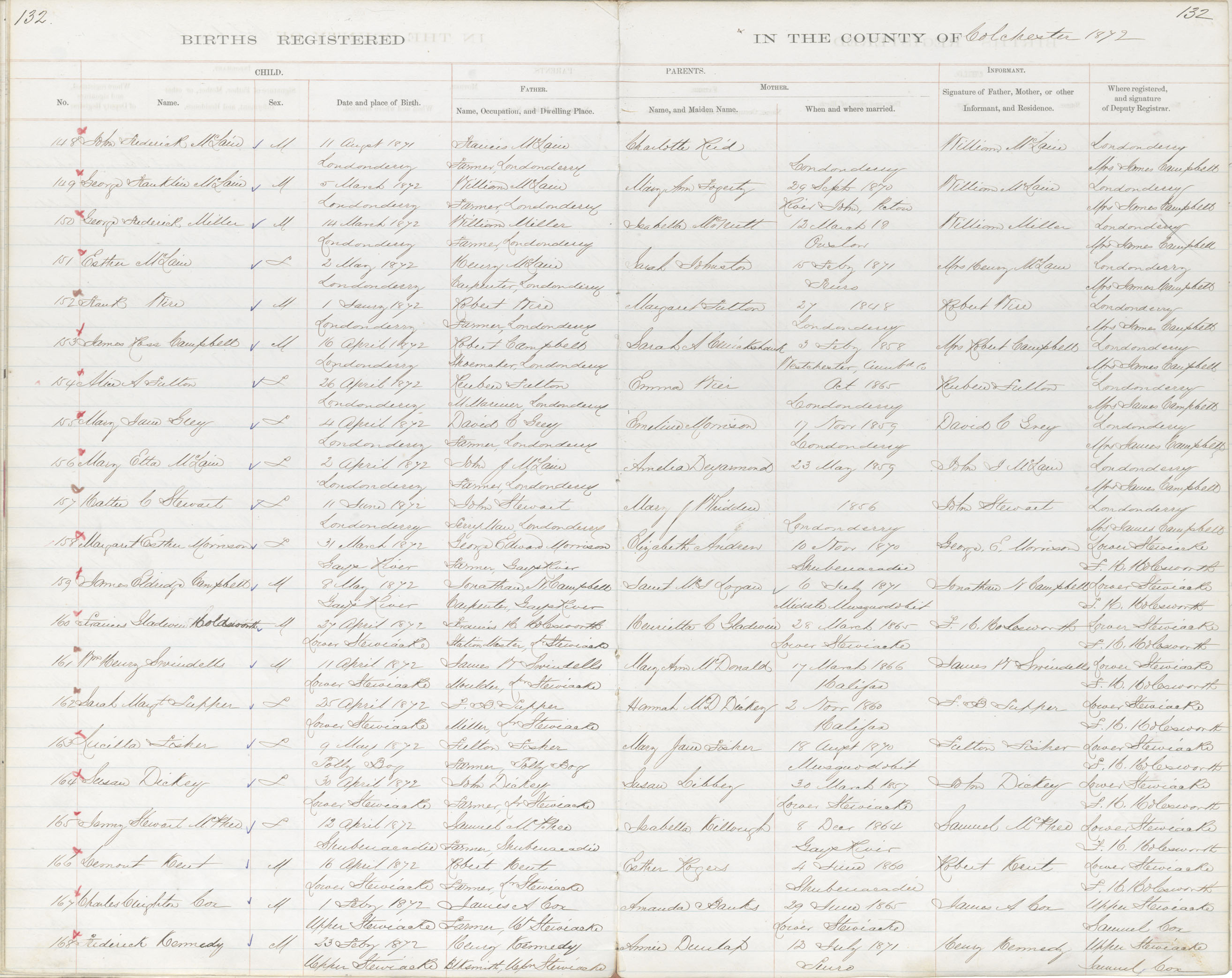 Birth Registration: Year: 1871 book: 1804 page: 132 number: 148
