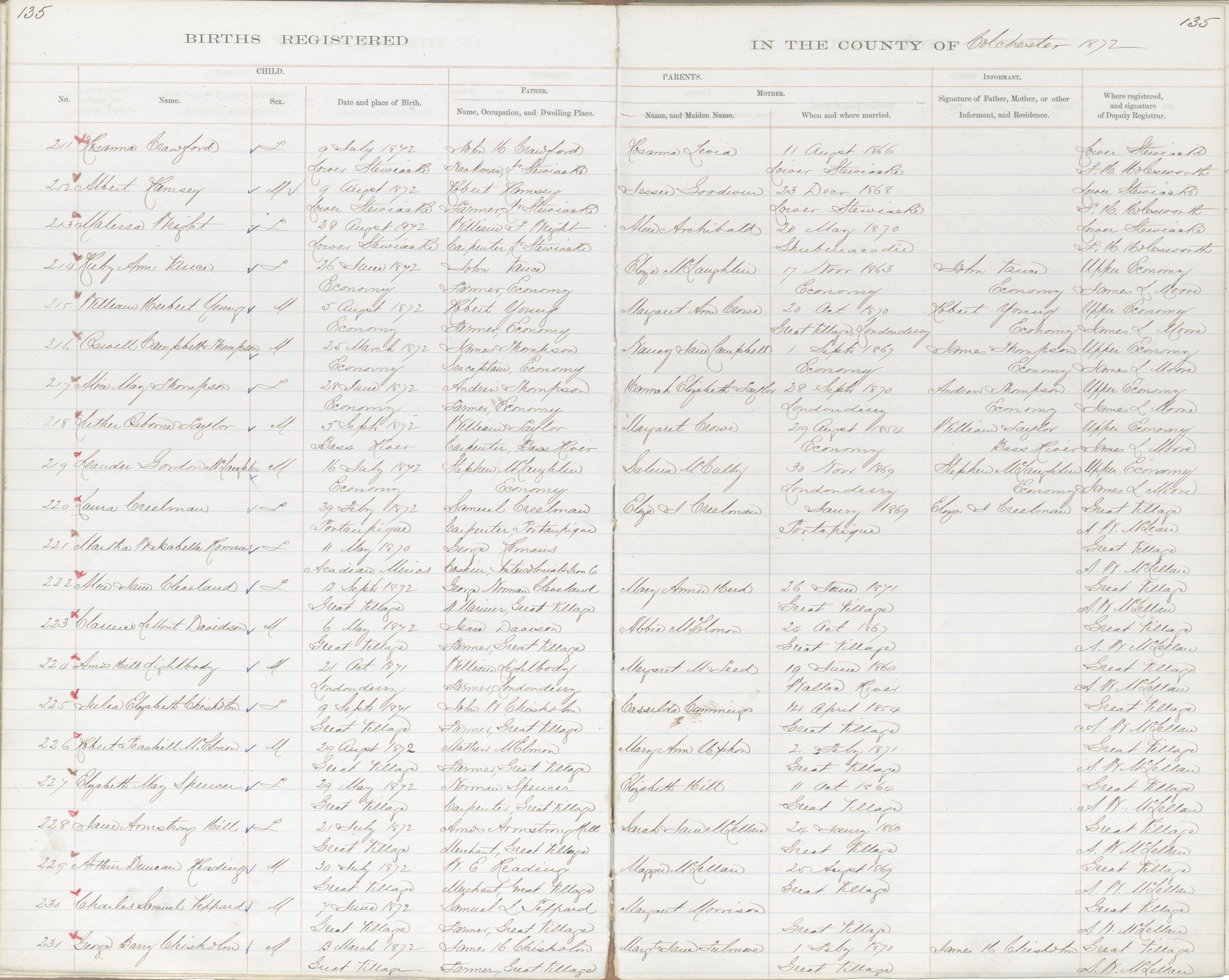 Birth Registration: Year: 1872 book: 1804 page: 135 number: 211