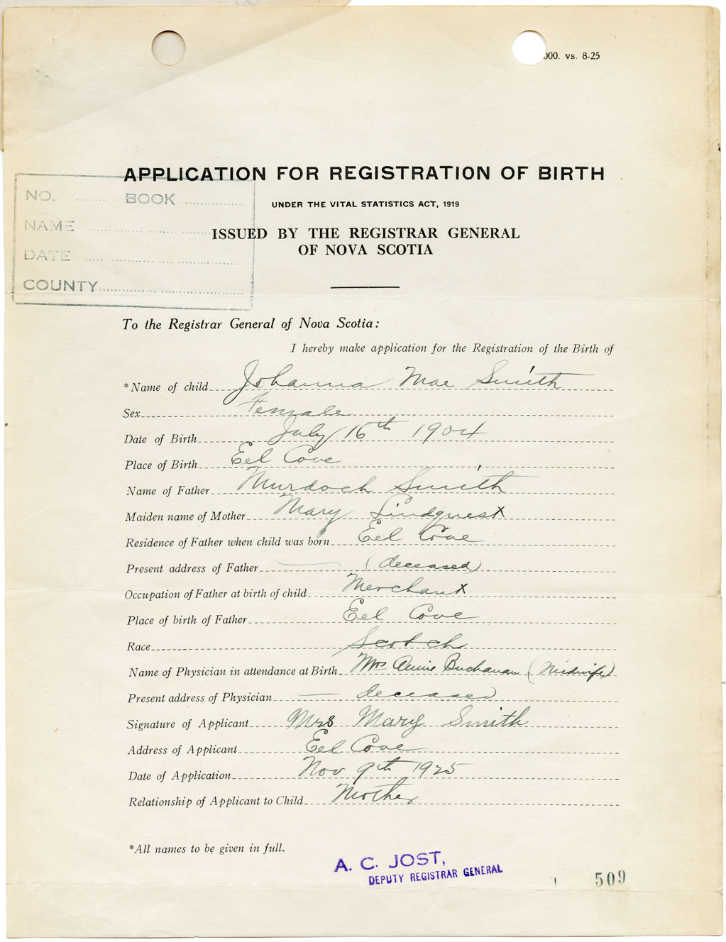 Nova Scotia Archives — https://archives.novascotia.ca/vital-statistics/birth/?ID=190850