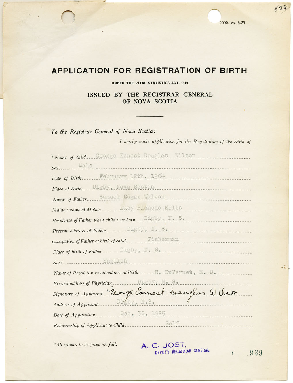 Male Birth Registration: Year: 1904 number: 93300939