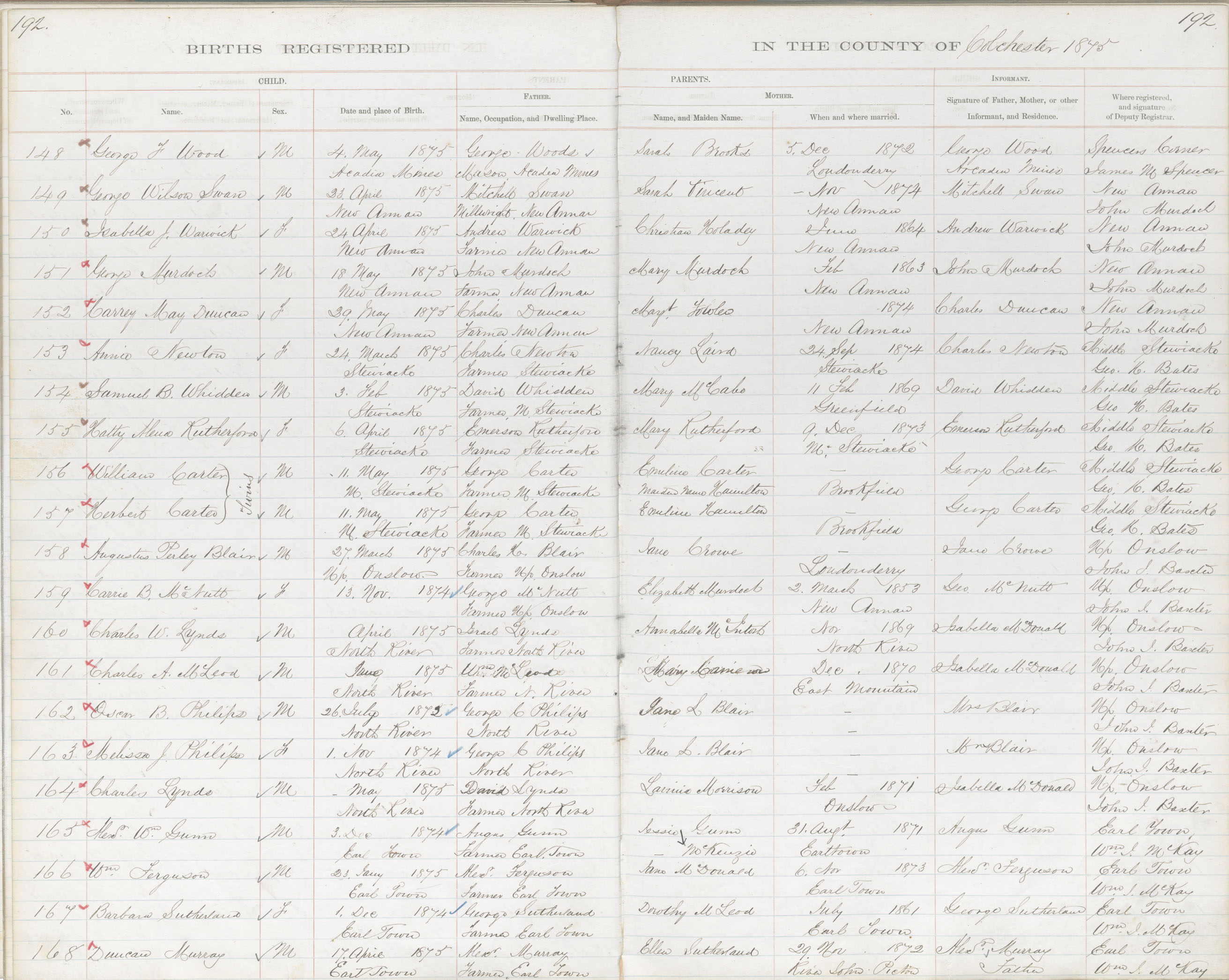 Birth Registration: Year: 1875 book: 1804 page: 192 number: 148