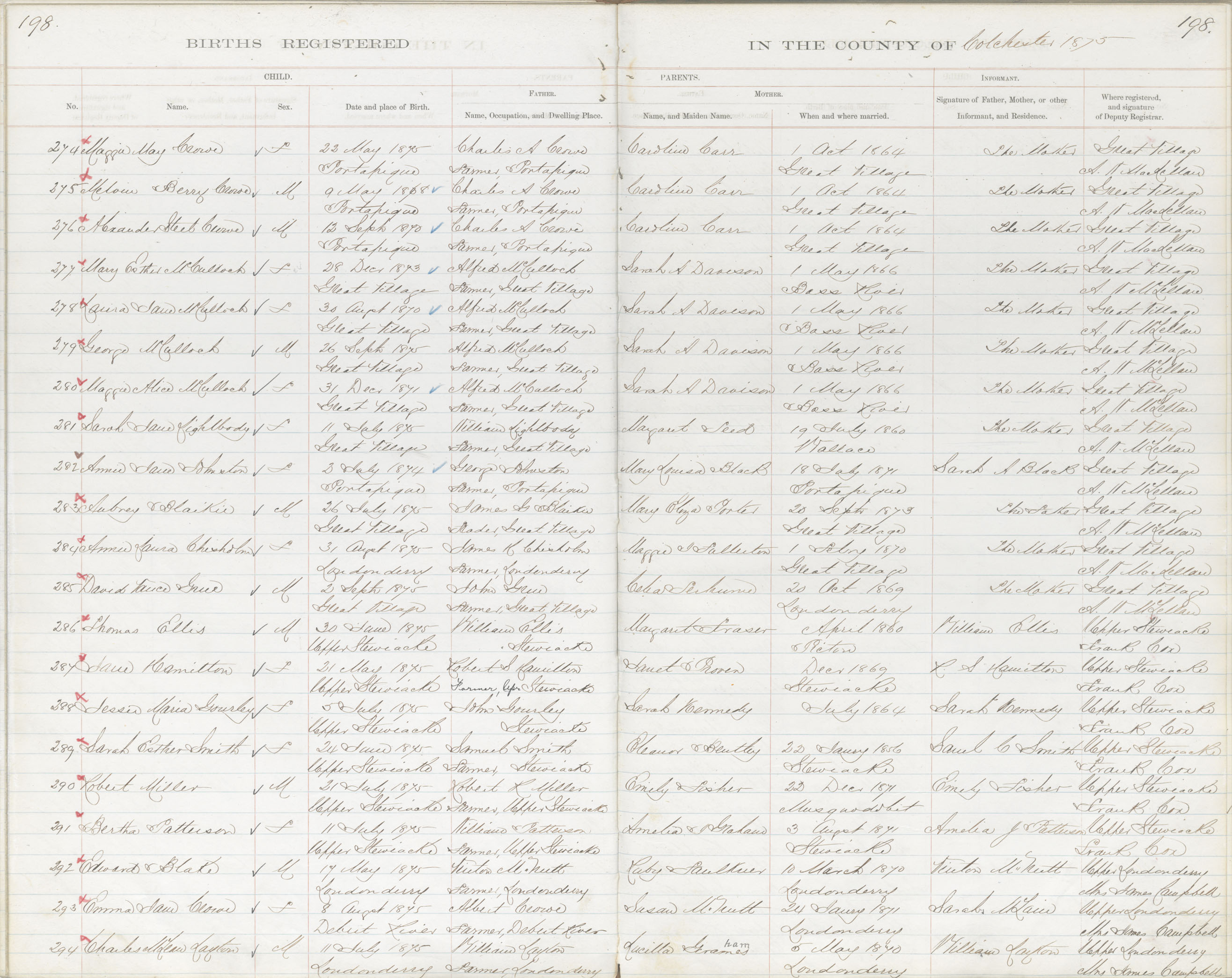 Birth Registration: Year: 1875 book: 1804 page: 198 number: 274