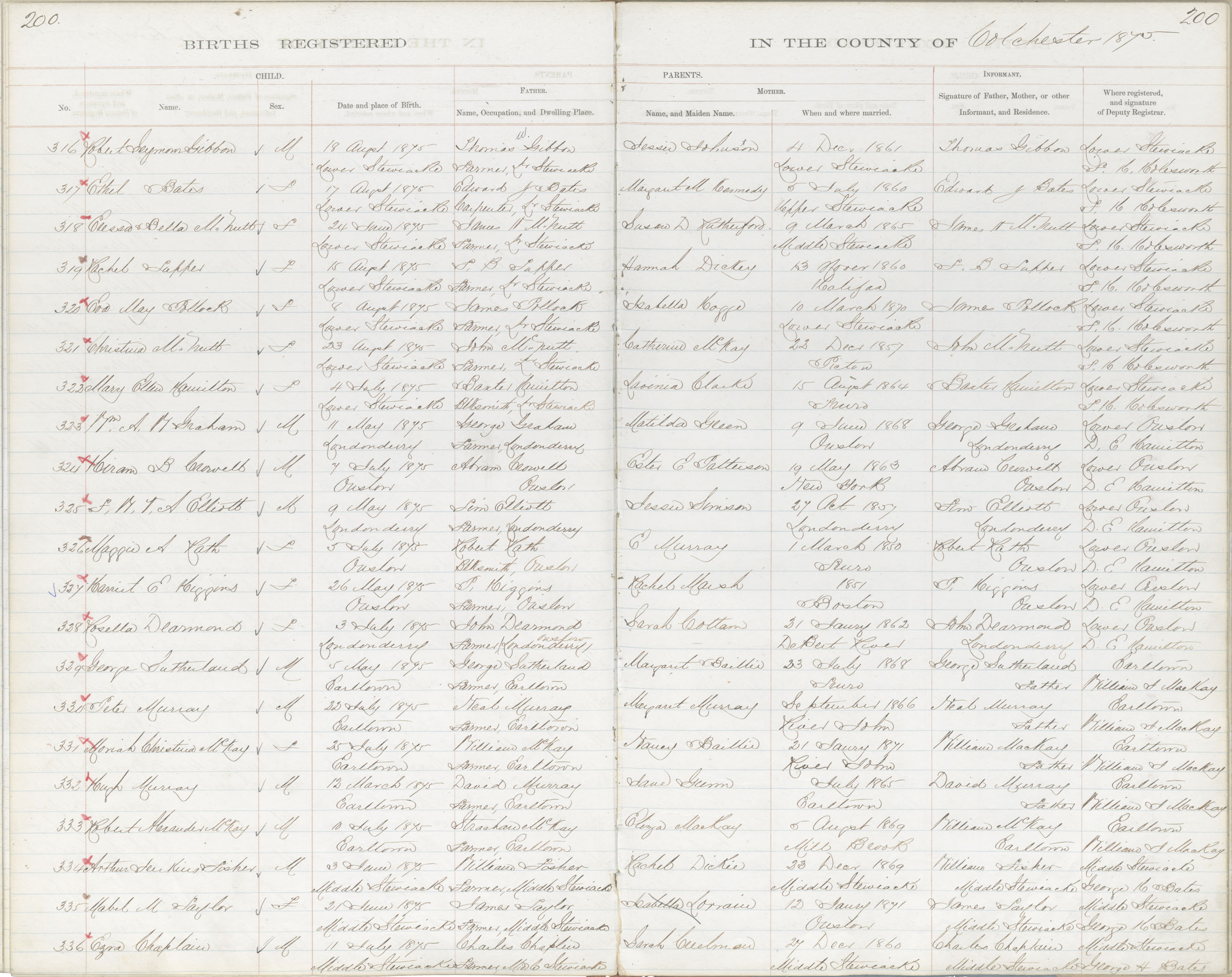Birth Registration: Year: 1875 book: 1804 page: 200 number: 336