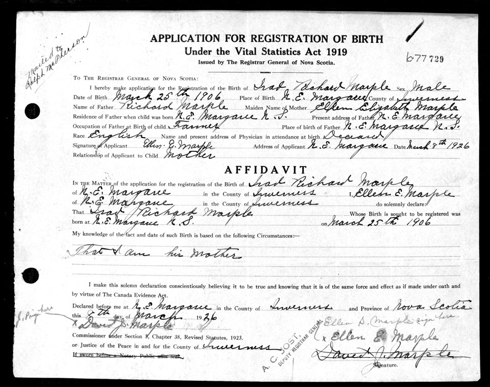 Nova Scotia Archives — https://archives.novascotia.ca/vital-statistics/birth/?ID=198726