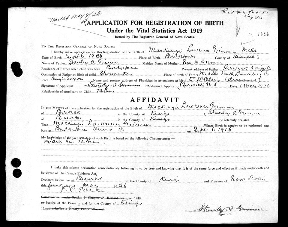 Nova Scotia Archives — https://archives.novascotia.ca/vital-statistics/birth/?ID=198808