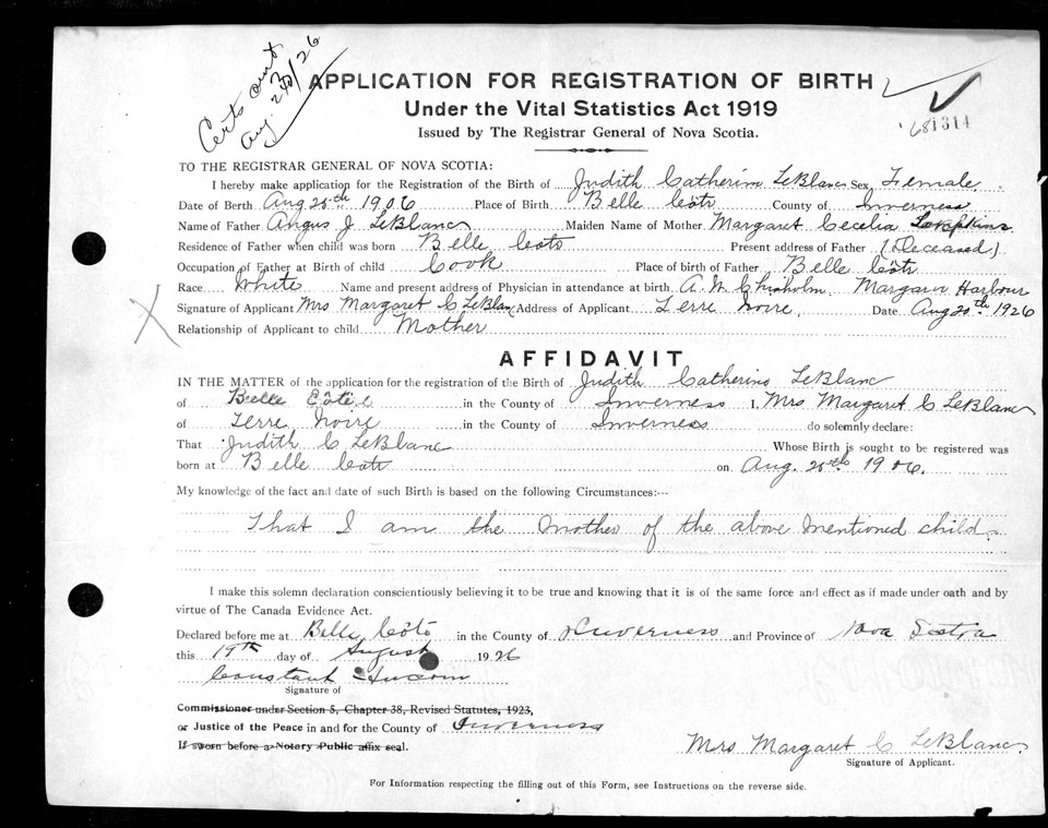 Nova Scotia Archives — https://archives.novascotia.ca/vital-statistics/birth/?ID=199022
