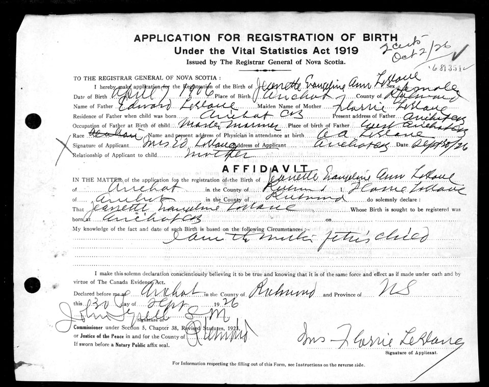 Nova Scotia Archives — https://archives.novascotia.ca/vital-statistics/birth/?ID=199026