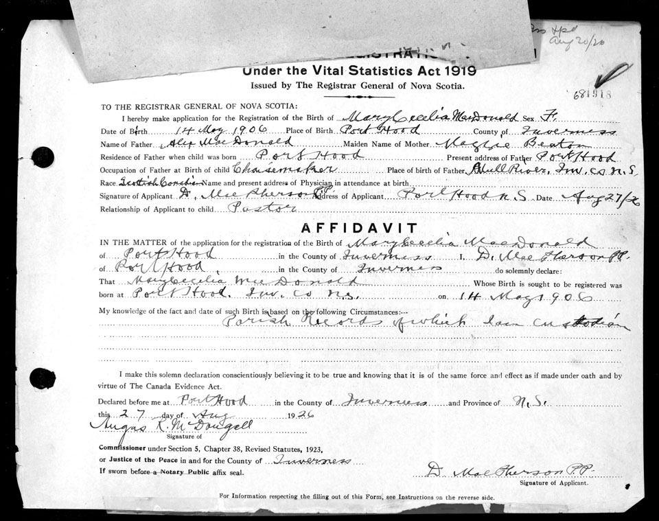 Nova Scotia Archives — https://archives.novascotia.ca/vital-statistics/birth/?ID=199098