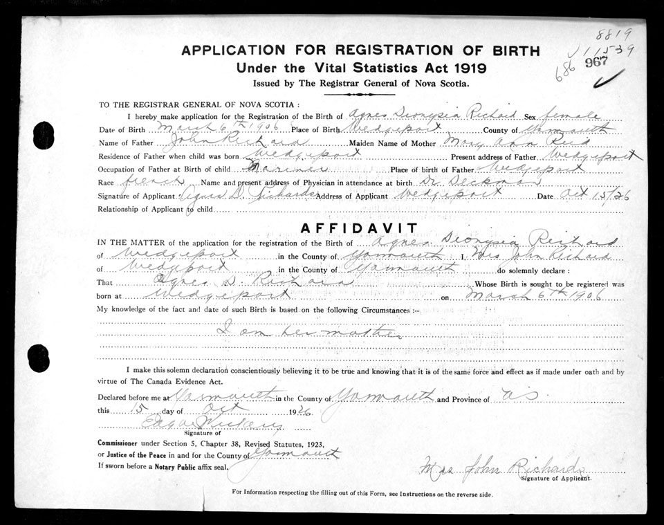 Nova Scotia Archives — https://archives.novascotia.ca/vital-statistics/birth/?ID=199422