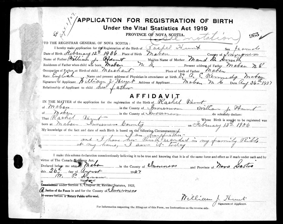 Nova Scotia Archives — https://archives.novascotia.ca/vital-statistics/birth/?ID=199610