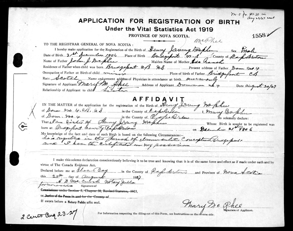 Nova Scotia Archives — https://archives.novascotia.ca/vital-statistics/birth/?ID=199663