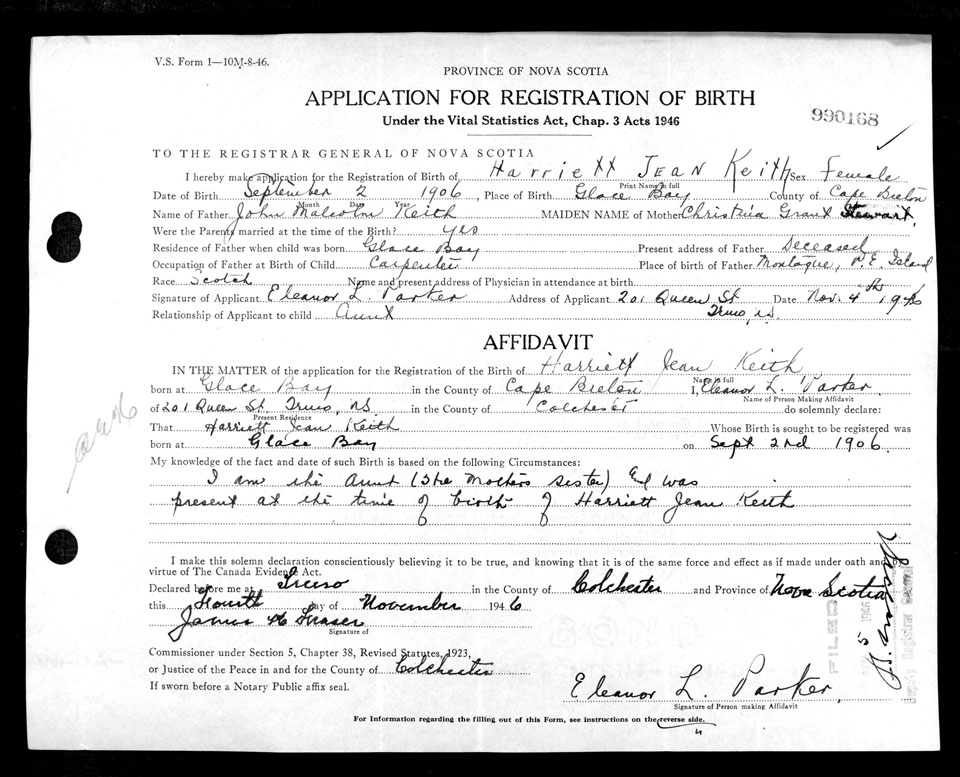 Nova Scotia Archives — https://archives.novascotia.ca/vital-statistics/birth/?ID=201605