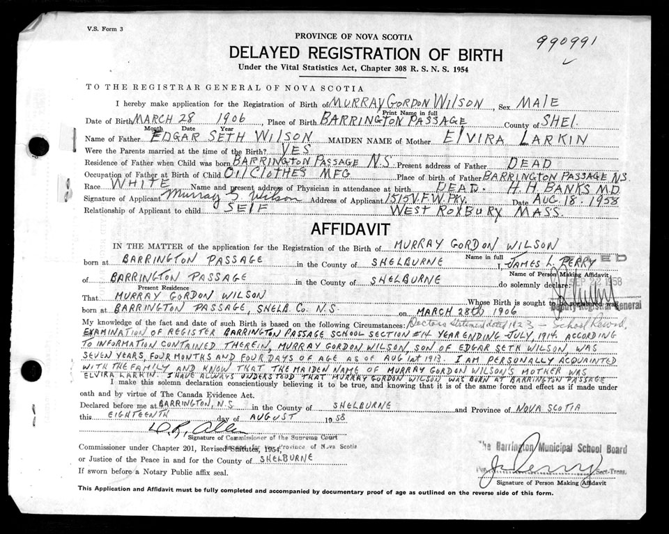 Birth Registration: Year: 1906 number: 99000991