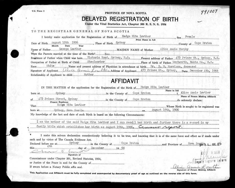Birth Registration: Year: 1906 number: 99100007