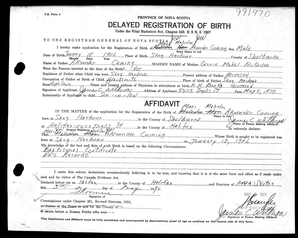 Nova Scotia Archives — https://archives.novascotia.ca/vital-statistics/birth/?ID=203397