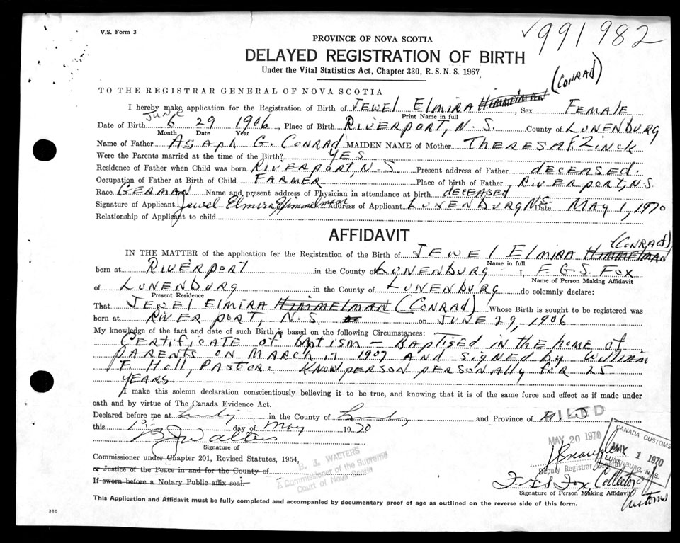 Nova Scotia Archives — https://archives.novascotia.ca/vital-statistics/birth/?ID=203409